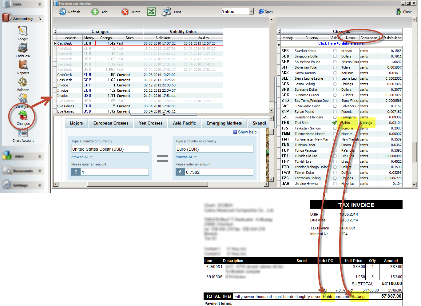 Additionally, if you need, cash desk accounts and invoices can have different changes values.